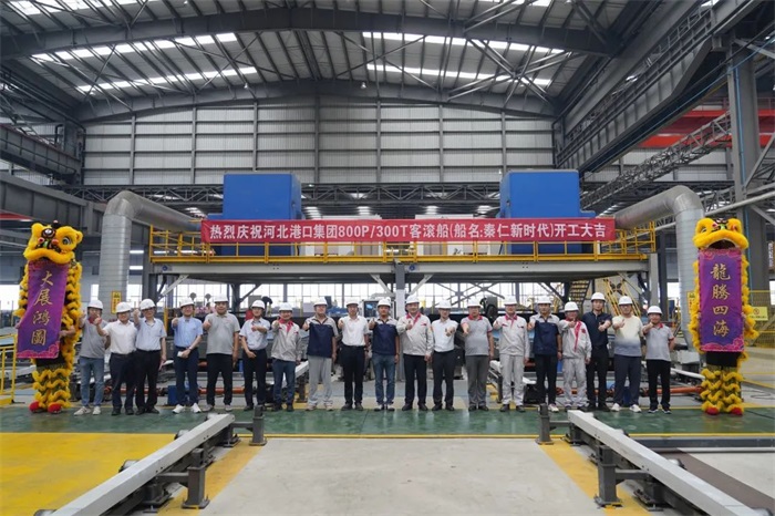 8 月 15 日,蕪湖造船廠為秦皇島合創(chuàng)船務(wù)有限公司建造的800客位新型客滾船舉行開工儀式。河北港口集團、秦皇島合創(chuàng)船...